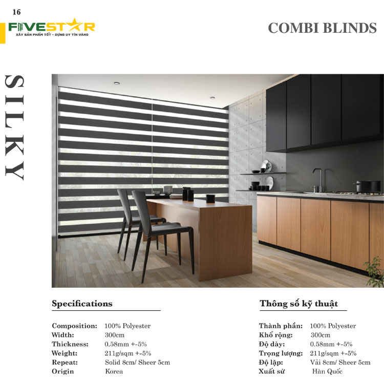 Thông số kỹ thuật mành cầu vồng hãng FIVESTAR mã SILKY