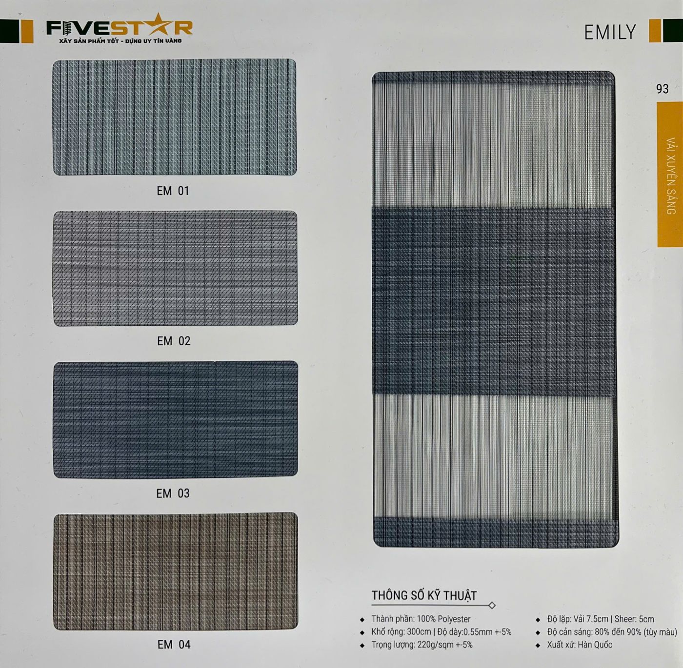Bảng màu rèm cầu vồng FIVESTAR mã EMILY