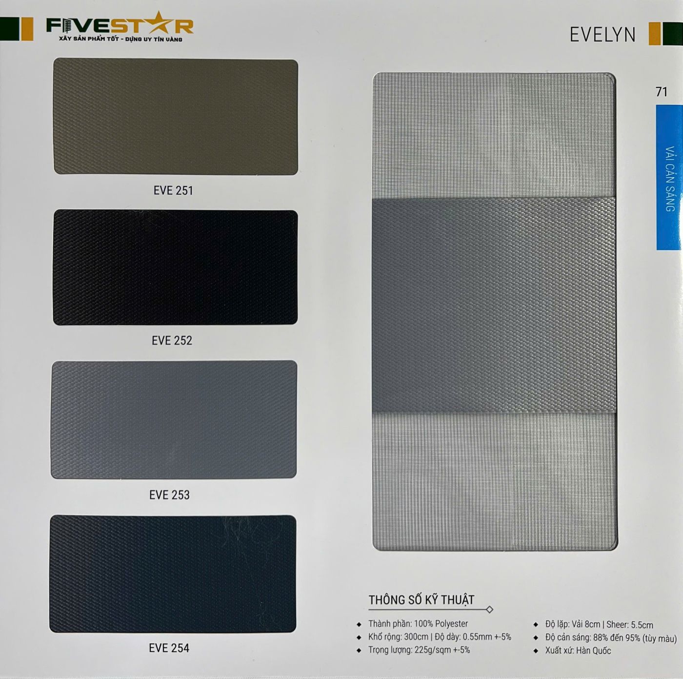 Bảng màu rèm cầu vồng FIVESTAR mã EVELYN
