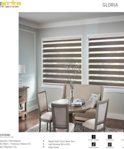 Rèm cầu vồng hãng FIVESTAR được làm từ vải tổng hợp polyester với hai dạng dệt hoàn toàn khác nhau. Trong đó, một lớp vải dày và khít có tác dụng che chắn ánh sáng. Một lớp vải mỏng như lưới giúp tạo ra không gian mở để bạn có thể nhìn xuyên ra bên ngoài. Chất liệu polyester cao cấp có độ bền rất cao, khả năng chống nắng tốt, thân thiện với môi trường và an toàn cho người sử dụng.