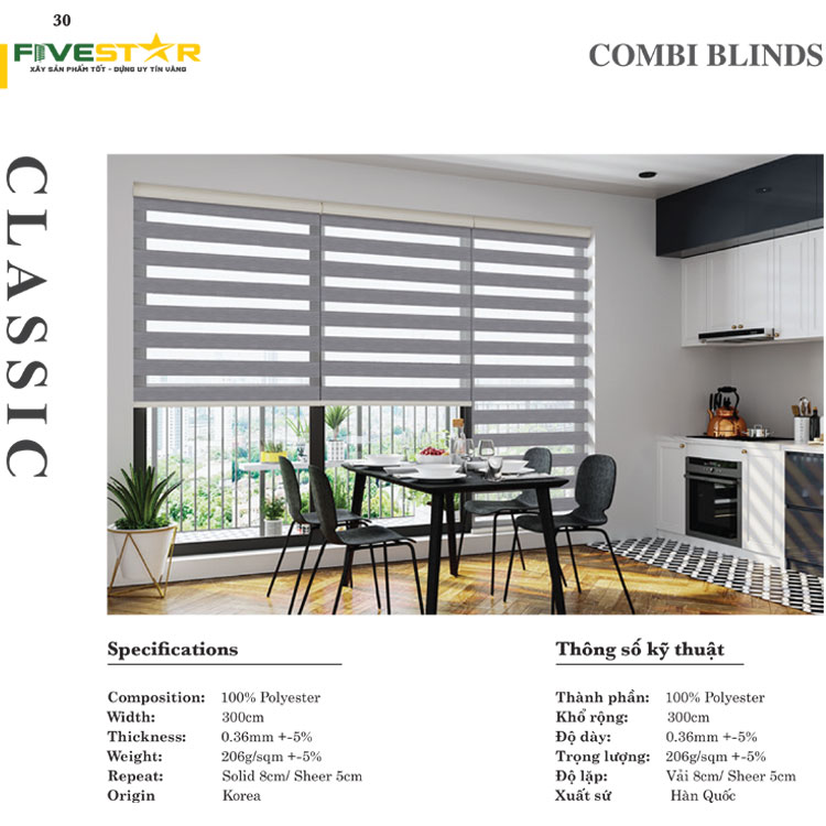 Thông số kỹ thuật mành cầu vồng hãng FIVESTAR mã CLASSIC