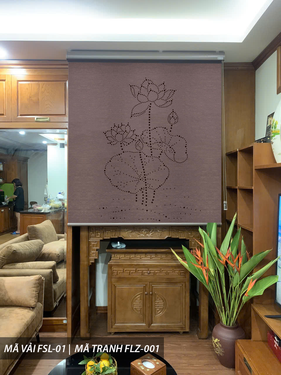 – Rèm dạng cuốn, nhập Hàn Quốc 100%. Trên bề mặt vải sẽ được đục lỗ 3D bằng công nghệ khắc laze, các lỗ đục trên rèm có thể là theo hình bức tranh có sẵn trong catalog hoặc hình theo sở thích của bạn.