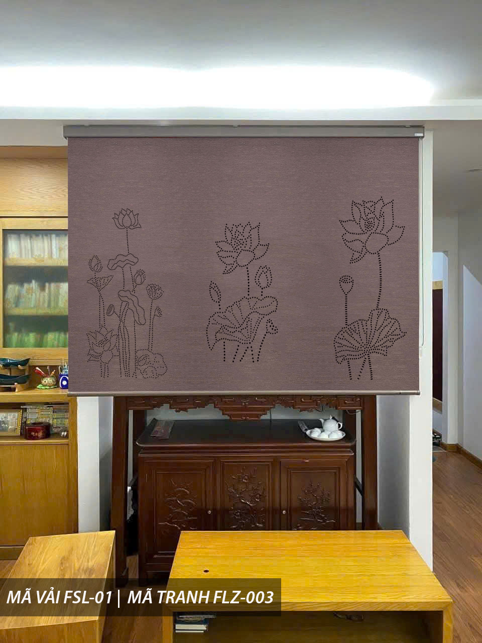– Rèm dạng cuốn, nhập Hàn Quốc 100%. Trên bề mặt vải sẽ được đục lỗ 3D bằng công nghệ khắc laze, các lỗ đục trên rèm có thể là theo hình bức tranh có sẵn trong catalog hoặc hình theo sở thích của bạn.