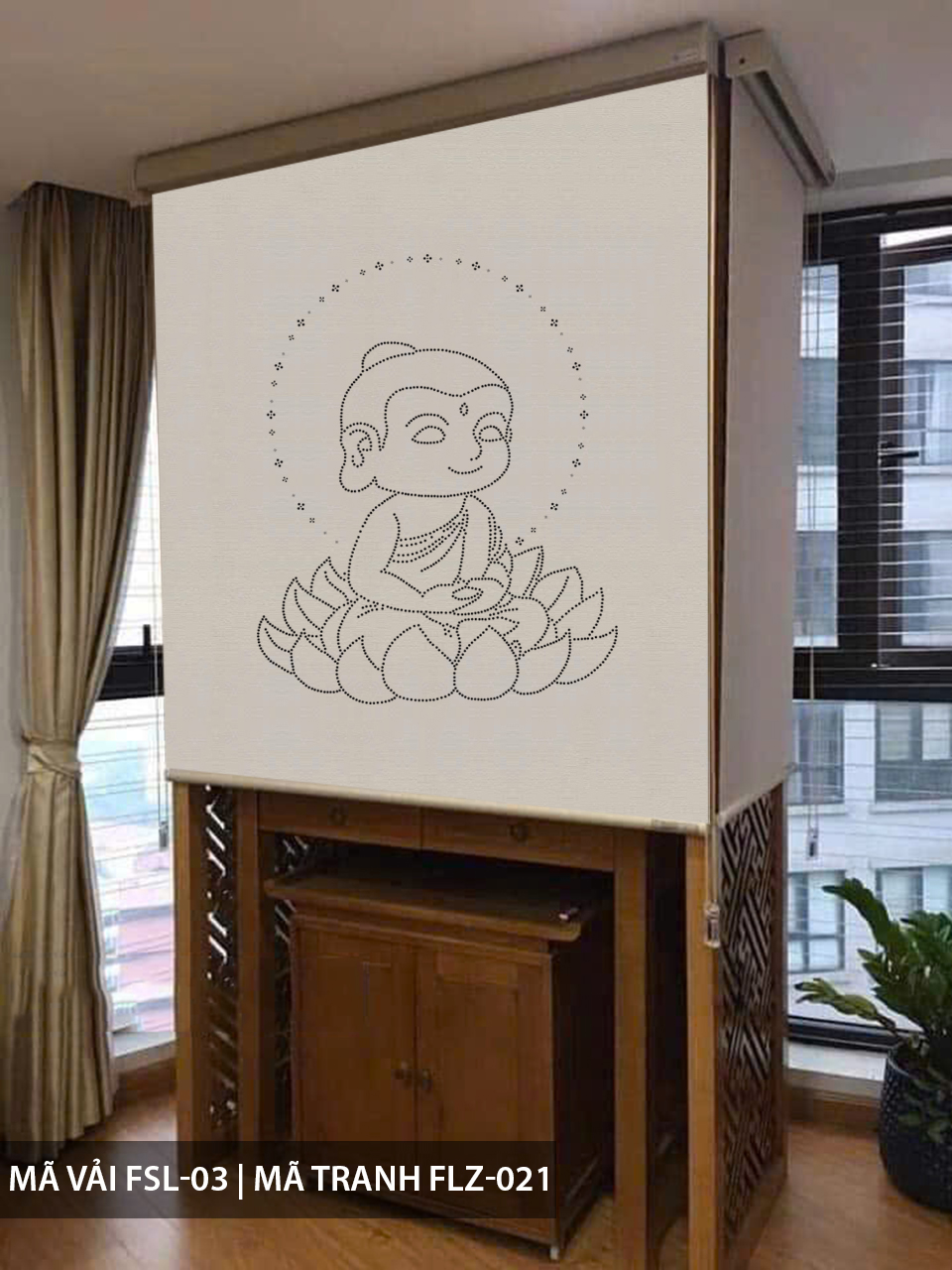 – Rèm dạng cuốn, nhập Hàn Quốc 100%. Trên bề mặt vải sẽ được đục lỗ 3D bằng công nghệ khắc laze, các lỗ đục trên rèm có thể là theo hình bức tranh có sẵn trong catalog hoặc hình theo sở thích của bạn.