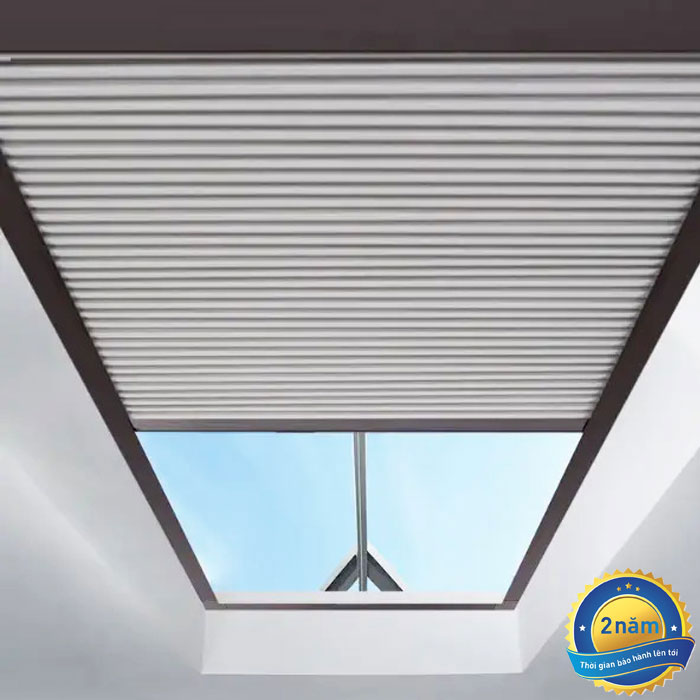 Với giếng trời cao hoặc trần kính khó thao tác, rèm motor tự động là lựa chọn tối ưu. Người dùng chỉ cần bấm remote hoặc điều khiển qua điện thoại, rèm sẽ tự động mở – đóng nhẹ nhàng, tiện lợi và sang trọng.